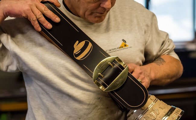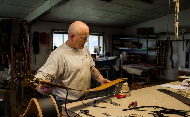 Bevor die Glocke abholbereit ist, wird sie in unserer Sattlerei mit Riemen in verschiedenen Ausführungen vollendet.