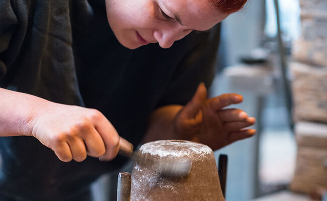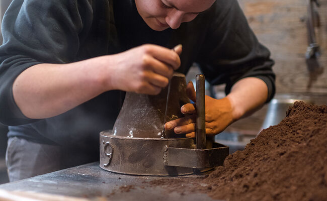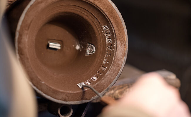 Um das Kernstück vorbereiten zu können, wird das Modell entfernt und die Einguss-Kanäle vergrössert, damit das Metall später schön fliessen kann.