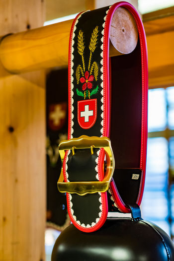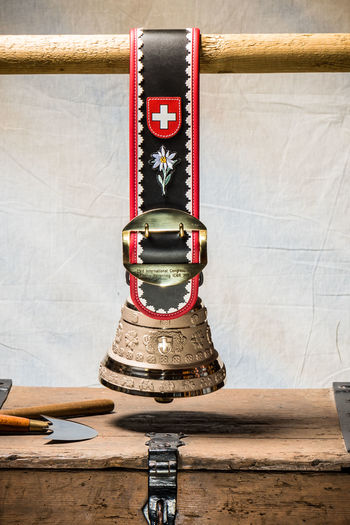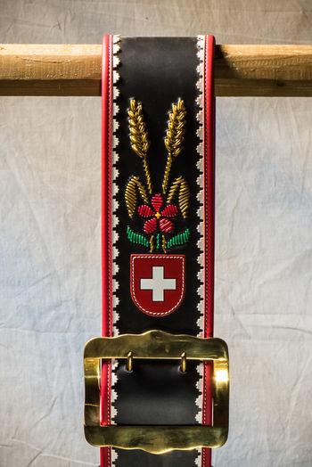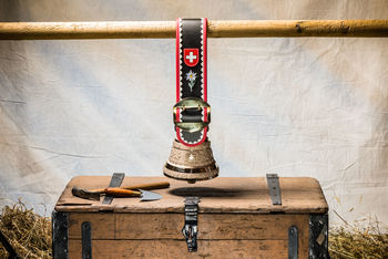 Ø ca. 240mm mit rot / weiss eingefasstem Riemen 13 cm mit CH-Wappen und Edelweiss mit Messing Schnalle