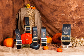 mit geschnitztem Riemen 10 cm (Traktor) und Messing Schnalle